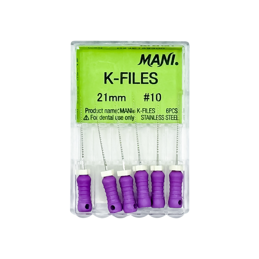 Las limas K-Files son instrumentos rotatorios o manuales utilizados para limpiar y dar forma a los conductos radiculares infectados o dañados. Su diseño helicoidal con cortes transversales les permite cortar el tejido dentinario y remover la pulpa necrótica.